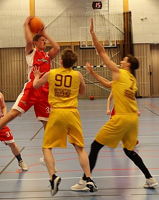 Herrlaget har verkligen avslutat säsongen magnifikt med 5 raka segrar! Den sista kom på hemmaplan mot seriesegrarna Central. Vi vann första quarten klart 13-6 men i andra fick de plötsligt ordning på sitt 3-p-skytte å vips ledde de i halvlek med 33-26.